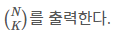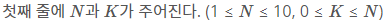 첫째 줄에 \(N\)과 \(K\)가 주어진다. (1 ≤ \(N\) ≤ 10, 0 ≤ \(K\) ≤ \(N\))