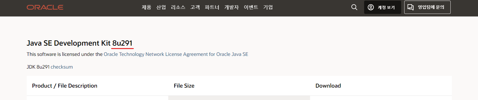 1. jdk1.8.0_291 download을 검색해서 상단에 오라클 사이트 클릭 (아래 사이트로 이동)
