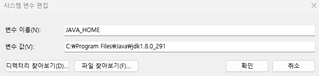다음은 JAVA_HOME도 똑같이 해준다. JAVA_HOME을 찾아서 클릭하고 편집을 한다. (편집 -> 디렉터리 찾아보기)