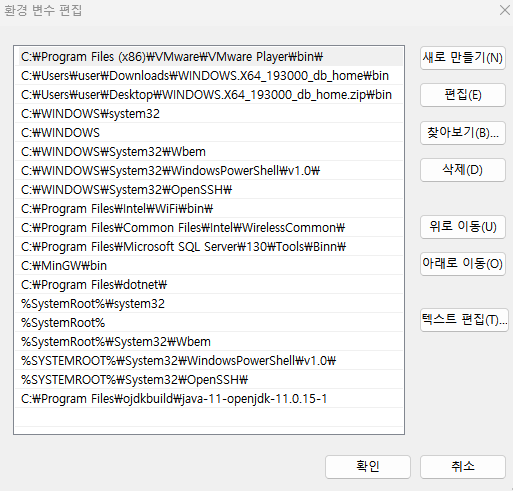 1. 환경 변수 창 -> 시스템 변수의 PATH를 클릭하고 하단의 편집 버튼을 누른다.