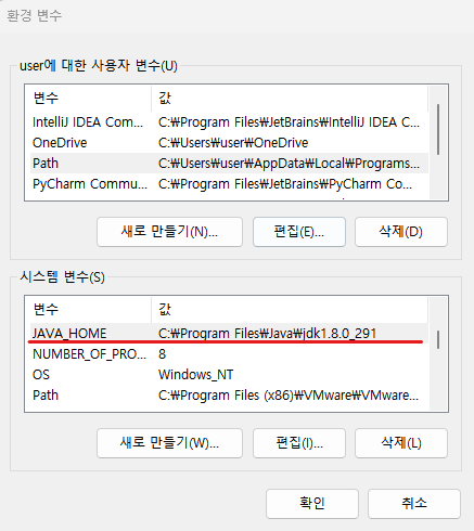 2. PATH, JAVA_HOME 경로 재설정