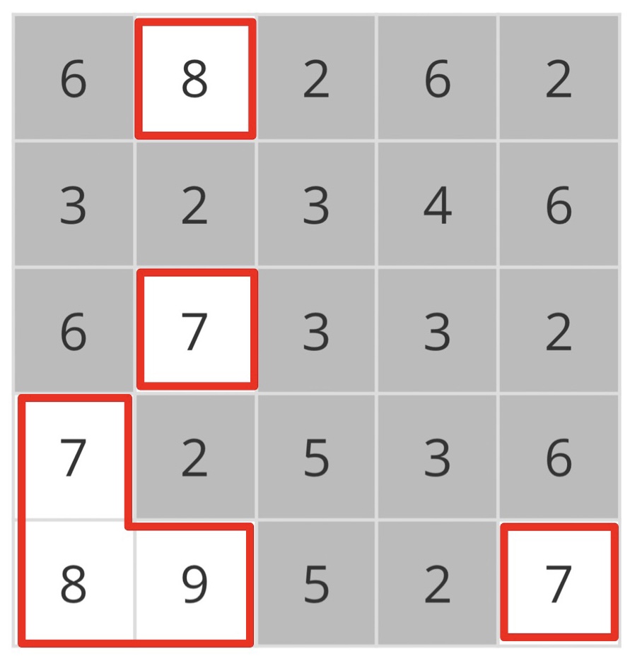 다음과 같이 N = 5인 지역이 있다고 하자.