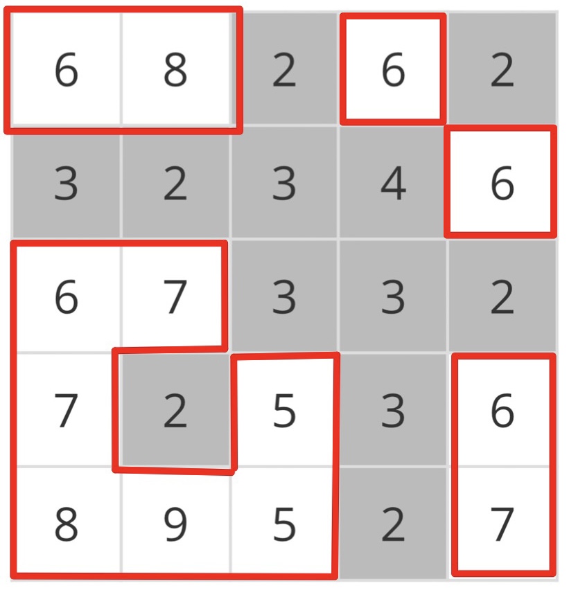 ๋ง์ฝ, ๊ฐ์๋์ด 6์ผ ๋ ๋์ด๊ฐ 6์ดํ์ธ ๊ณณ์ ๋ชจ๋ ์ ๊ธด๋ค. ๊ทธ๋์ ๋จ์ ์์ญ์ ์ด 4๊ณณ์ด๋ค.
