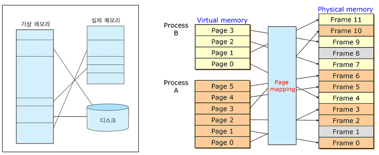 - 가상 주소는 Page Mapping Table(페이지 사상 테이블)을 통해 실제 주소를 계산한다.