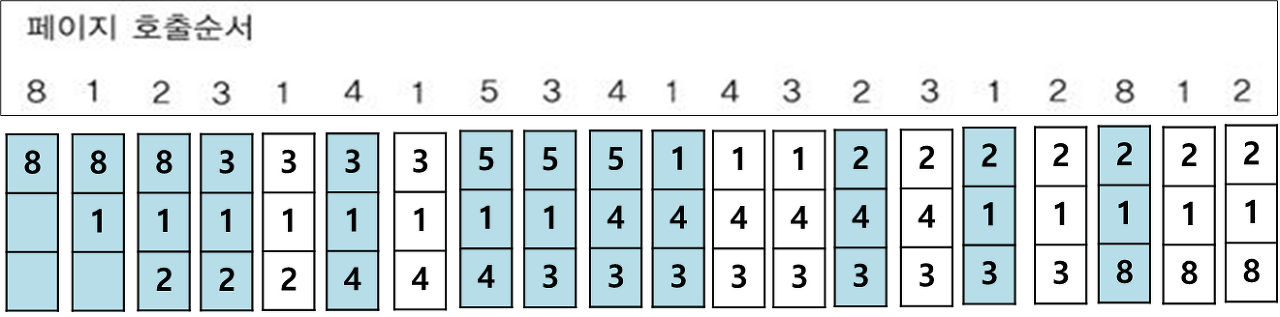 - 페이지 사용시간을 기록하기 위해 카운터나 스택의 사용이 필요하다.