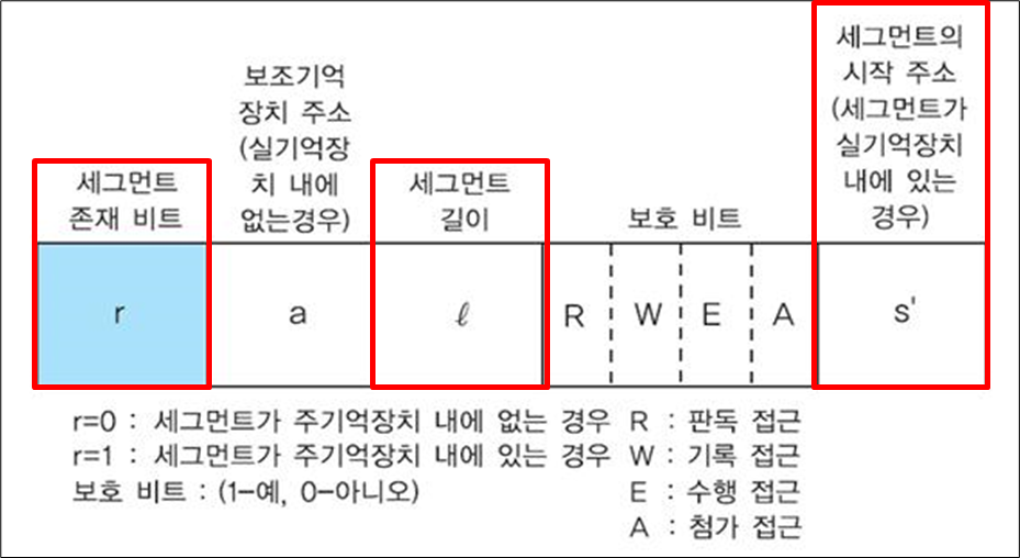 - 존재 비트 : 해당 세그먼트가 주기억장치에 존재하는지 여부