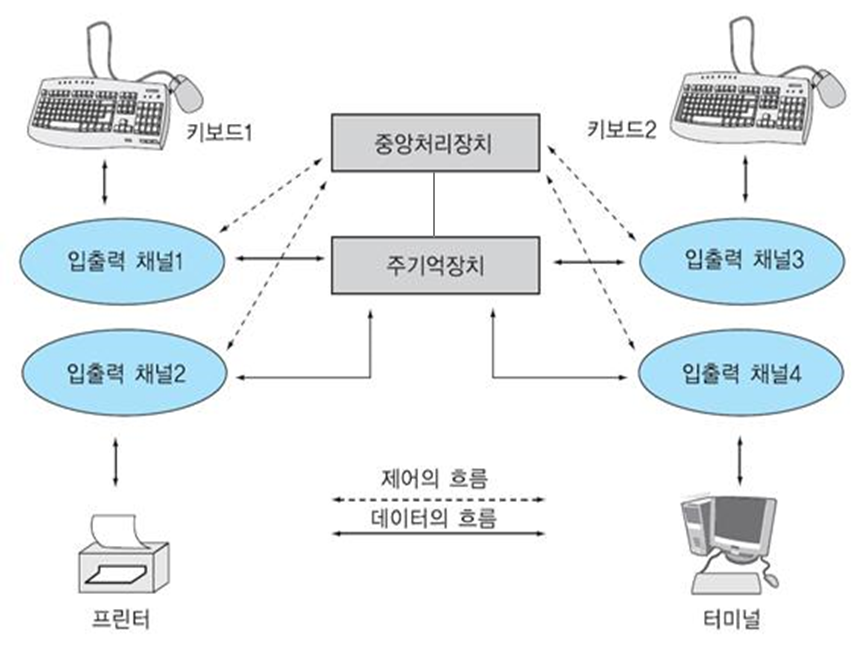 - 입출력 장치와 CPU 사이의 입출력 전담 처리기로 모든 입출력은 채널을 통하여 수행된다.