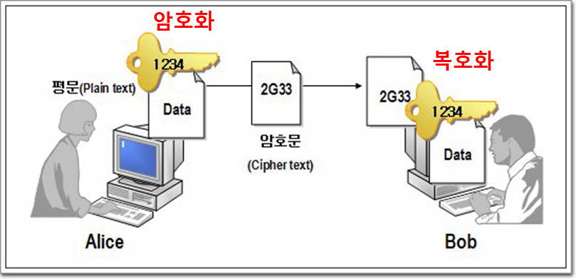- 비밀키 값을 이용하여 데이터를 암호화한다. (상호 비밀키 값 공유)