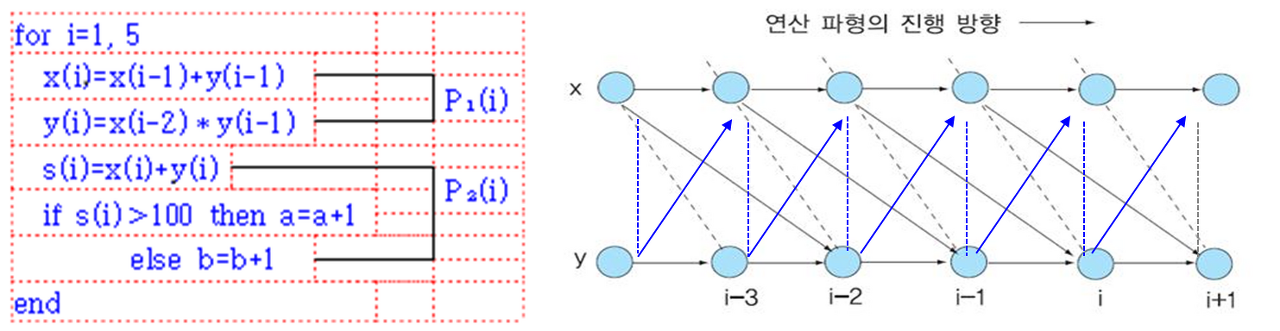 - 연산 트리 높이 축소(Tree height reduction) 방법과 순환 분산(Loop distribution)방법이 있다.
