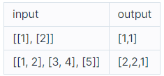 정수를 담은 이차원 리스트, mylist 가 solution 함수의 파라미터로 주어집니다. mylist에 들은 각 원소의 길이를 담은 리스트를 리턴하도록 solution 함수를 작성해주세요.