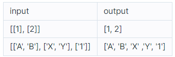 문자열을 담은 이차원 리스트, mylist 가 solution 함수의 파라미터로 주어집니다. solution 함수가 mylist를 일차원 리스트로 만들어 리턴하도록 코드를 작성해주세요.