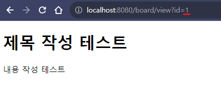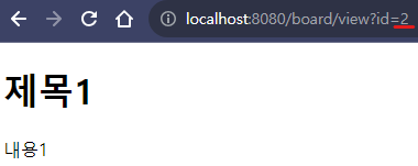 localhost:8080/board/view?id=1 url로 가면 url에 있는 1이 Integer id쪽에 1이 들어가고, 들어간 1이 boardview메소드의 id로 다시 들어가서 게시글을 불러온다.