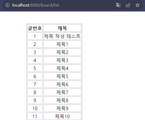 실행 결과 리스트 페이지가 나온 걸 볼 수 있다.