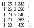 print(fish_data[:5]) #2개의 리스트가 잘 연결되었는지 5개의 데이터를 확인