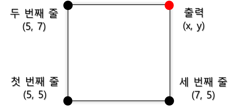 세 점이 주어졌을 때, 축에 평행한 직사각형을 만들기 위해서 필요한 네 번째 점을 찾는 프로그램을 작성하시오.