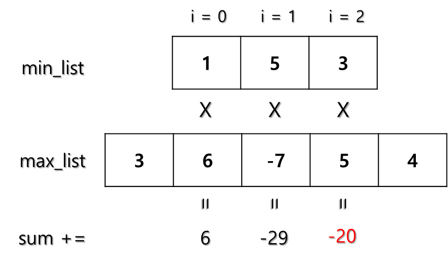 sum += min_list[i] * max_list[i + cnt] #๊ณฑํ ๋ค ํฉ๊ณ