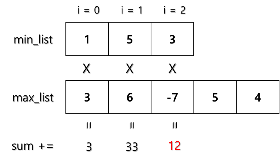sum += min_list[i] * max_list[i + cnt] #곱한 뒤 합계