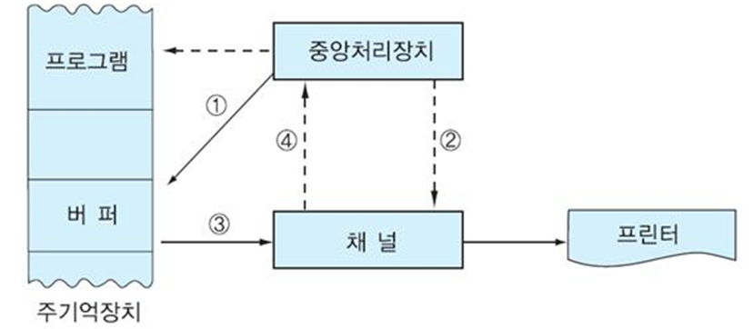 - 입출력 채널은 버퍼에 있는 데이터를 프린터로 출력을 수행한다.