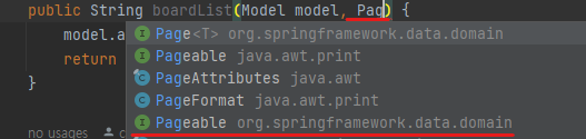 ※ Pag만 쳐도 관련 클래스과 인터페이스들이 검색된다. Tab으로 선택하면 된다.