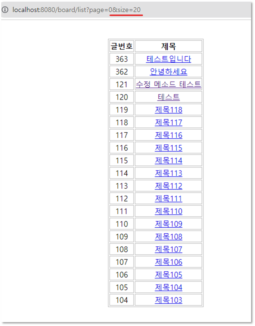 한 페이지에 보여줄 게시글의 수도 지정해 줄 수 있다. url에 size도 넘겨주는 것이다.