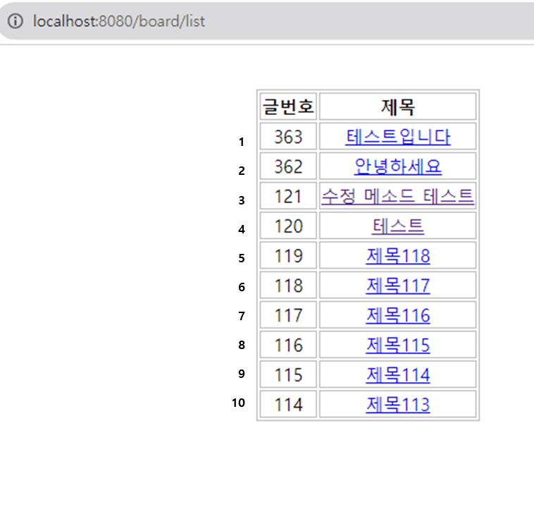 실행하기(localhost:8080/board/list)