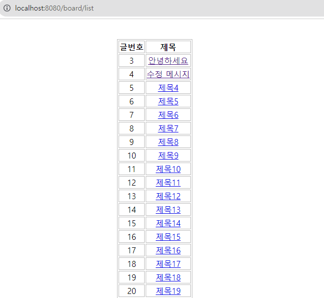 실행하기(http://localhost:8080/board/list)